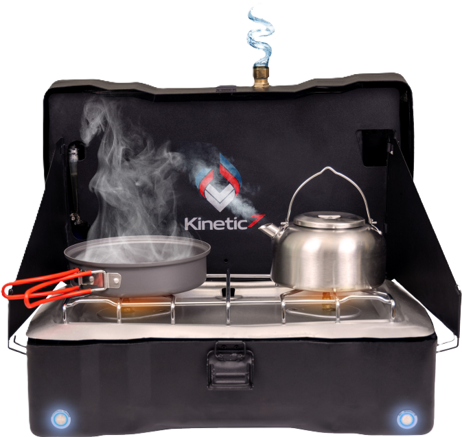 Kinetic7’s hydrogen-on-demand cooking systems represent the future of clean, powerful, and sustainable cooking. Each product uses just a small amount of water and electricity to instantly create hydrogen fuel—delivering a flame that’s safe, reliable, and emission-free.